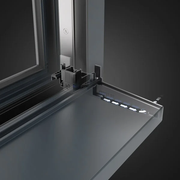 French passive doors include an integral finger pull lock, eliminating the need for a second handle – continuing the clean, minimal Sheerline aesthetic. An innovative mishandling device also ensures doors are locked in the correct order.