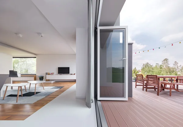 Prestige bi-folds can help soften boundaries, creating an increased sense of space and a seamless transition between gardens and interiors. Slim, elegant, aluminium ensure light bathes interiors, even when doors are closed. Providing bright airy interiors no matter what style or configuration of Prestige bi-fold is choosen.